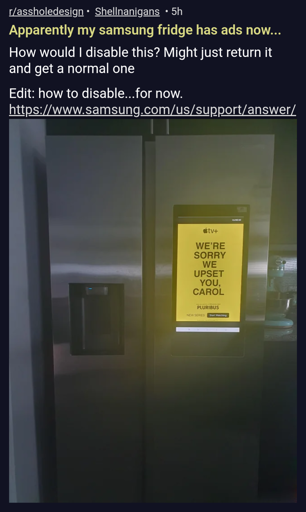 ByteOnBikes@discuss.online to A Boring Dystopia@lemmy.world · 16 hours agoRefrigerator ads are finally here!discuss.onlineimagemessage-square140linkfedilinkarrow-up1475arrow-down14