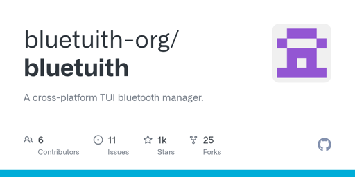 arrow-up135arrow-down1external-linkbluetuith - A TUI based Bluetooth Manager v0.2.6 is released (Windows/MacOS support)plus-squaregithub.comdarkhz@feddit.nl · 6 days agomessage-square1linkfedilink