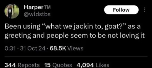 What are we jacking to, my goats??