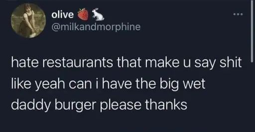 It’s weird when it’s an otherwise totally normal eating establishment. Like if you just make normal looking burgers at a normal burger place, it’s weird to sexualize that.