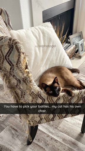 minus-squaredingus@lemmy.worldlinkfedilinkEnglisharrow-up1·2 months agoMy cat uses both the posts and the furniture, even though the posts block some of the furniture corners. :(