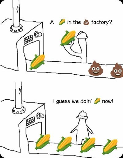 I mean, the last time I left a shit, there were two kernels of corn in it. Just two.
