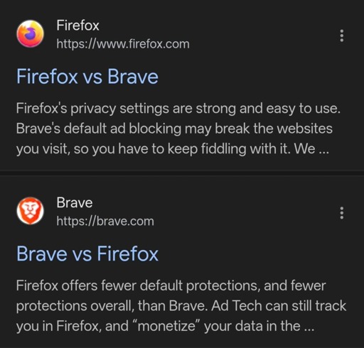 Or we point to their affiliate links they embedded in every link to crypto sites for a while. Or the one site that recommends them as the best privacy browser that’s actually run by a Brave employee.