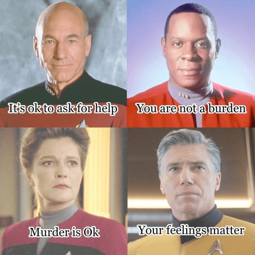 arrow-up1446arrow-down1imagePositive affirmations from your favorite captains startrek.websiteJames R Kirk@startrek.websiteEnglish · 1 day agomessage-square57linkfedilink
