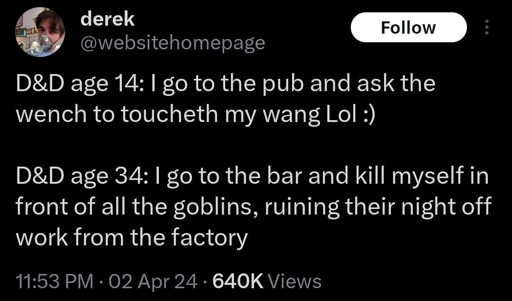 arrow-up1643arrow-down1imageDND fulfills our deepest fantasieslemmy.mlComradeSharkfucker@lemmy.mlEnglish · 3 days agomessage-square58linkfedilink