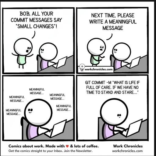 I once found a commit message in our commit history that just said, “i hate git…” bcz they hadn’t changed anything, and I think it took a new line character and decided that they’d actually changed like 5 lines of code twhen they hadn’t.