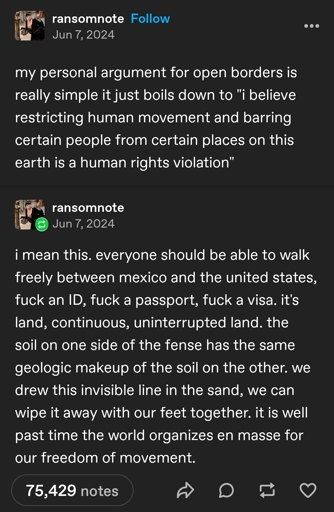 That brings up some interesting questions. Morality aside (a big aside. I know), does border security actually give citizens an economic or physical security advantage? Is it even possible for another country to send over so many people that they could take over? Some of this is predicated on an “us vs them” mentality, which I agree is part of the problem. I also know there are people with values incompatible with mine and who might not be willing to coexist peacefully with me. I agree on the goal. I don’t have the solution. Thoughts?