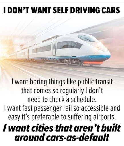 So various sized rail vehicles will connect with various sized road vehicles for the last mile. Everything electric and everything autonomous.