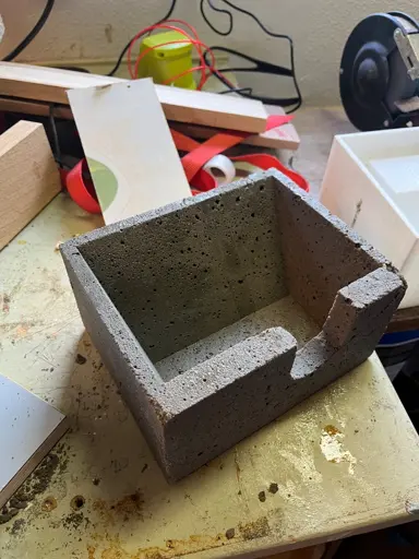 All recommendations are welcome. In particular how to vibrate a two part mold without it breaking apart. I did not weigh the mix and water, but i suspect i used too much water. Also added about 2% plasticizer.