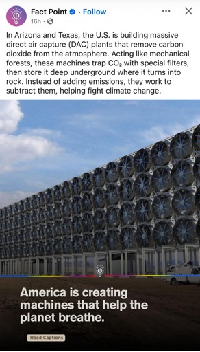 And then to run it! I hate how these ideas get funding and are immediately being built without question. How much energy was put in the materials, in building it, and how much more will they need to run it to extract how much CO2 exactly? And then let’s say it works. It works so well that in that region CO2 levels fall well below and reach normal levels. What then? They leave it there? Move it?