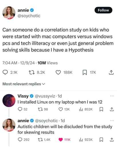 She must have had a Mac. Only Windows teaches both the knowledge and the fury to convince children to switch to Linux.