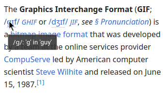 Aatube@lemmy.dbzer0.com to You Should Know@lemmy.worldEnglish · 5 days agoYSK When you hover over a piece of the phonetic notation on (English) Wikipedia, it shows you an example for its pronunciationsh.itjust.worksimagemessage-square63linkfedilinkarrow-up1405arrow-down113file-textcross-posted to: til@lemmy.world