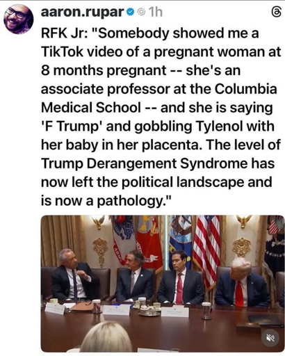 minus-squarehuppakee@piefed.sociallinkfedilinkEnglisharrow-up16·8 days agoMy money is on that there was no woman, no baby, no placenta, no Tylenol. Just gobbling.