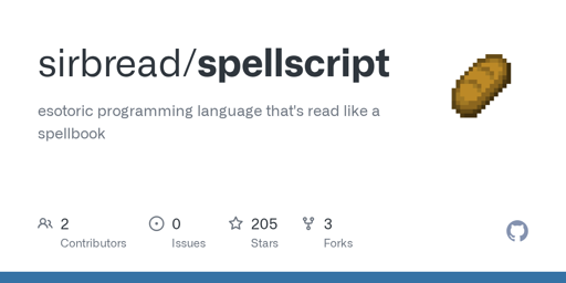arrow-up111arrow-down1external-linkSpellscript: esotoric programming language that's read like a spellbookgithub.comCevilia (she/they/…)@lemmy.blahaj.zone to Witchy Memes@lemmy.worldEnglish · 3 months agomessage-square0linkfedilinkfile-textcross-posted to: programmer_humor@programming.devprogrammerhumor@lemmy.mlhackernews@lemmy.bestiver.se