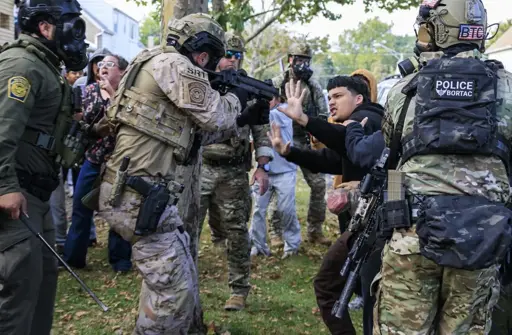 “When you’re using these tactics, you are asking people to be hospitalized,” said Oscar Sanchez, a member of a rapid response network that tracks immigration enforcement activity. He said he saw an agent hit a teenage girl in the head with a tear gas canister. “You see elderly folks on the [ground], so you just ask yourself, what is this for? Why is the aggression needed? Why are these elevated tactics even being used?