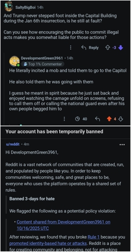 But, reddit is going to reddit. Somehow objective reality has been classified as hate speech on reddit.