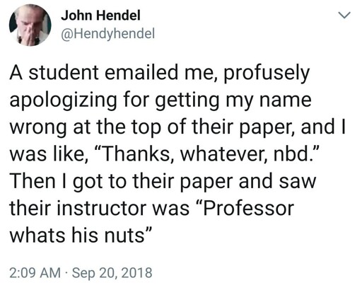 i.e. in this instance the professor wouldn’t know whose paper this was