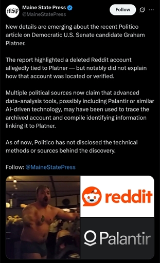 destructdisc@lemmy.world to A Boring Dystopia@lemmy.world · 18 days agoApparently Palantir can access the content of social media accounts that were deleted a decade ago.lemmy.worldimagemessage-square177linkfedilinkarrow-up1837arrow-down114file-text
