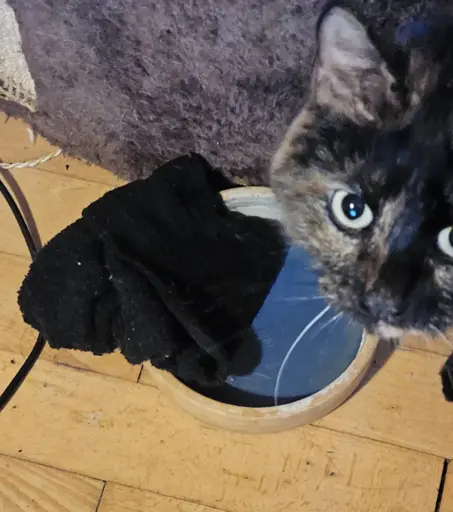 Had a cat once who loved to drop aluminium foil balls (which we threw for her to chase and play with, and ended up laying around all over the place, as cat toys are wont to) into the water bowl and then fish them out.