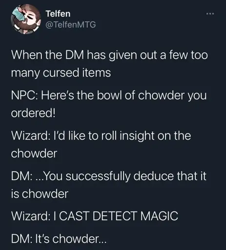 Stamets@lemmy.dbzer0.com to RPGMemes @ttrpg.network · 1 month agoTrust nothinglemmy.dbzer0.comimagemessage-square26linkfedilinkarrow-up1504arrow-down16