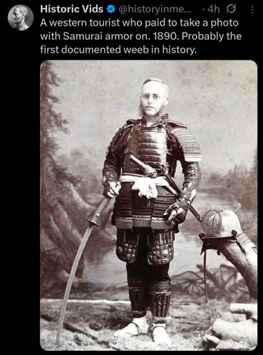 minus-square🍉 Albert 🍉@lemmy.worldlinkfedilinkarrow-up130·28 days agobtw, he was a Scottish industrialists who imported locomotives to japan, he had lots of deep connections with Japanese government and was gifted that suit. not just a tourist taking a picture