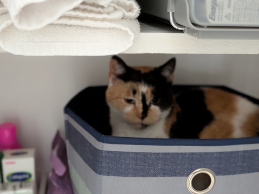 Millie is enjoying the bathroom closet.