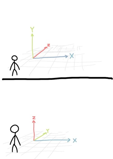 I think that’s the confusion. You could get used to the Z being treated as Y, but it’s incomparable with everything else and you’d have to now confirm with other’s that length and width are X and Z and extrusions from 2D plane are Y. This doesn’t occur much anywhere else. This is the whole premise behind the meme. Arguing between standards when one is universal, the other is niche but those that have only learned the niche one are adamant the universal one is wrong.