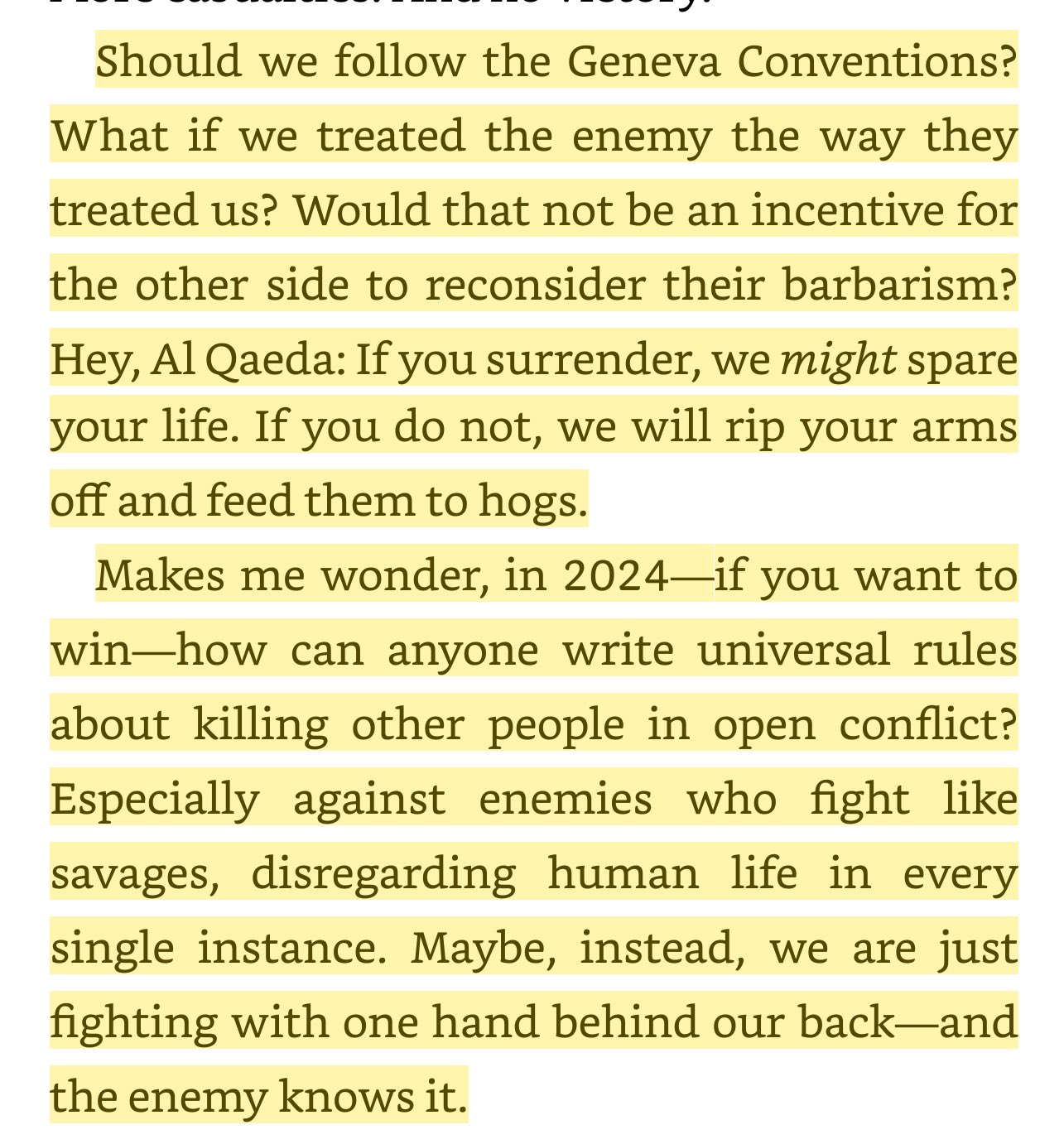 I won’t claim to have researched it myself, but I’ve seen about a dozen different people quote the section of military law that talks about illegal orders that are so blatant you don’t need to check or think, they’re illegal, and the example they use is “firing upon the shipwrecked”.
