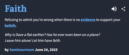 Faith is a big word with many different meanings. Faith in people means trust, but it’s not the same as a faith in god. Putting your faith in a person is making yourself vulnerable to be hurt by them. Putting your faith in god is to abdicate your personal responsibility in favor of an ideology attributed by religious leaders to imaginary friends.