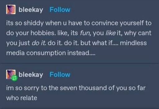 minus-squareVolcanna@sh.itjust.workslinkfedilinkEnglisharrow-up5·4 months agoI enjoy it when I start doing them tho