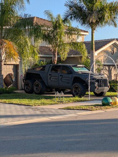 What is that thing? Why is that thing? It looks like the vehicles from Aliens. On the windshield, there’s a decal that reads “Apocalypse 6x6.”