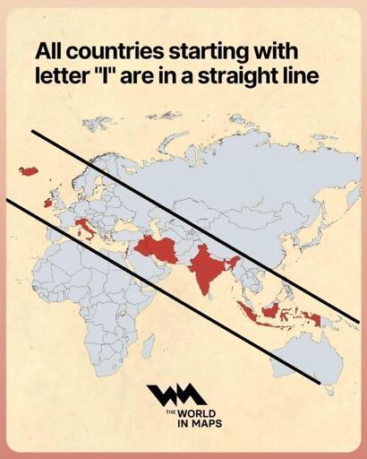 ooli3@sopuli.xyz to Map Enthusiasts@sopuli.xyz · 4 months agoAll countries starting in letter "I" are in a straight linei.redd.itimagemessage-square82linkfedilinkarrow-up1359arrow-down145file-text