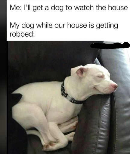 Yeah. My dog didn’t do a damned thing while I got burgled. He probably got pets.