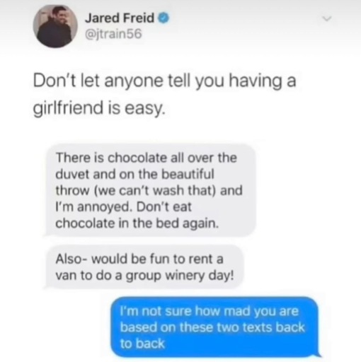 I’ll bite. I could have seen myself doing something like this before I was put on anti-anxiety and anti-depression medication. The reasoning was I would have invented some kind story in my head that ACTUALLY my husband is going on this trip because he HATES ME. Or maybe he’s cheating. Or or or or- and it would have spiraled out from there until I was in tears. It sucked, and I am still sometimes kind of shocked I survived long enough to get treatment.