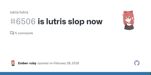 It allows idiots like me who cannot program for real to make some useful tools (I use it to make Basic scripts for my own use in LibreOffice, for example). That said, IMO it’s crucial that these things are self contained, at least for now. So far all LLMs are way too error prone and no way is the Lutris author reviewing all generated code. Nobody does. All productivity gains are lost then.