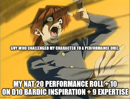 RPGMemes @ttrpg.network•Because I do not want to race on who rolls Investigation the fastest every room and every fight. This is a coop game dammit.