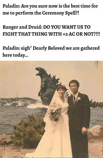 1·2 years agoI did check! It went something like: Me: Before I go further into this room, I’m backing up to the wall and shooting everything to see if any of it bleeds. Party: You sure you’re not going to get eaten by the wall? Me: …well if the wall is a mimic I’m already dead.