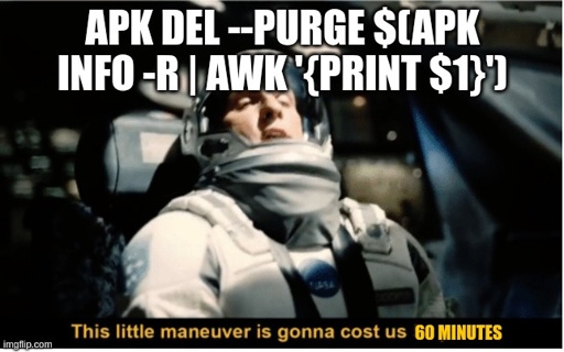 apk del --purge $(apk info -R | awk ‘{print $1}’)
